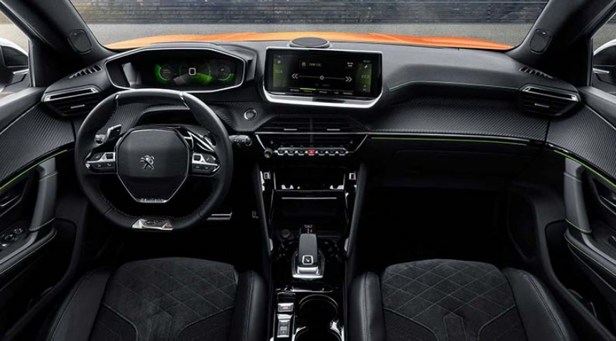 内饰设计部分,全新标致2008也采用了最新的家族式风格,官方将这样的设计称为3D i-Cockpit沉浸式座舱,包含有双辐式运动方向盘、10英寸中控液晶屏以及采用三维投影显示的仪表,中控部分的钢琴式按键也独具特色。材质方面,这款车采用Alcantara材质或Nappa皮质,以及碳纤维风格纹理饰板进行装饰。