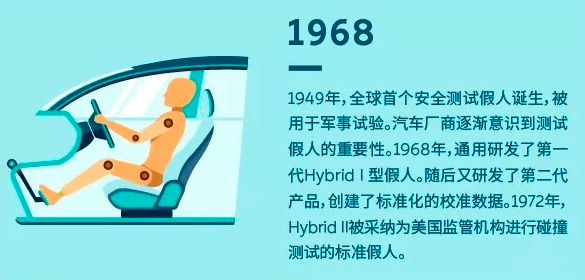 1968年,全球首个安全测试假人诞生,被用于军事测试。汽车厂商逐渐意识到测试假人的重要性。