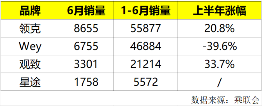在这种背景下,一个新生高端品牌取得这样的成绩应该说很不错。这个简单对比下目前自主品牌高端品牌的市场表现就可窥见一二。国内目前冲击高端的自主品牌代表主要是WEY和领克。领克上半年同比增长超过20%,同期WEY却是下滑近40%。