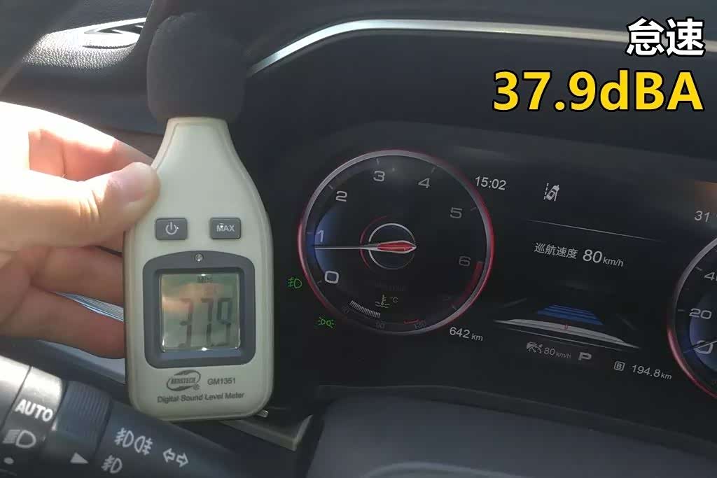 在引擎处于热车怠速状态下,HS7的最低车内噪音为37.9dBA——说实话,这个成绩对于自主品牌而言是不可想象的。一般来说,热车怠速车内最低噪音低于 40dBA就可以拿“A”;低于38dBA则可以评“A+”。在车内静音性方面,奥迪品牌堪称楷模,我们之前测过的绝大多数奥迪车型,其热车怠速车内最低噪音均低于38dBA。从这一点看,HS7真的是从奥迪那边偷到了些什么……