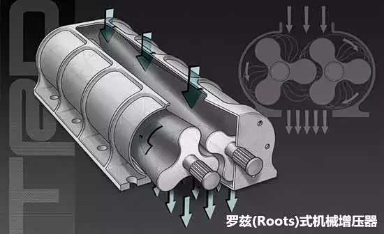 涡轮增压器是利用发动机运作所产生的废气,通过同轴两个叶轮组驱动的空气压缩机,它与发动机没有任何机械联系,比机械增压的效率高并且成本相对较低,缺点是涡轮介入有延迟,动力来得不够线性;机械增压器安装在发动机上并由传动带与发动机曲轴相连接,从发动机输出轴获得动力来驱动增压器的转子旋转,从而将空气增压吹入。因为采用机械连接,转子的速度与发动机转速是相对应的,所以它的动力输出没有明显迟滞,并且工作温度相对低很多,耐用性更强。但缺点也明显,因为它消耗一部分发动机动力,机械能损耗造成增压效率不高。