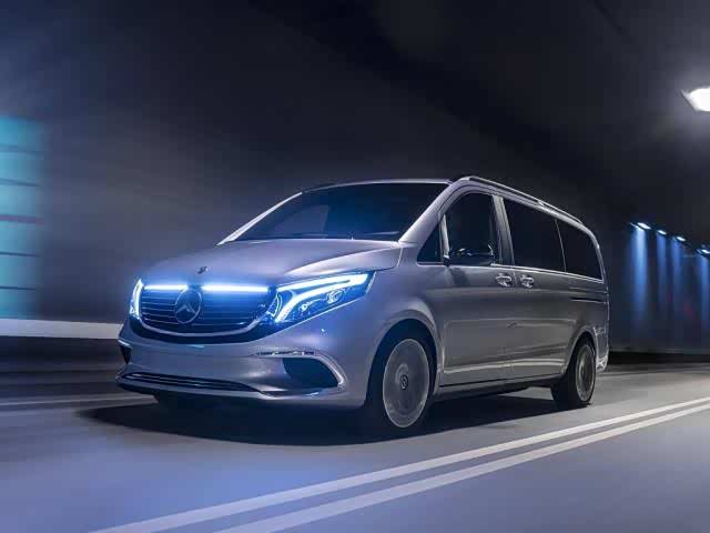 这款MPV的名字叫做EQV,目前已经处于量产阶段,EQ代表着奔驰家族未来的新能源系列,而V则是因为它基于V级打造而来。新车从前脸不难看出,封闭式格栅与两侧的双折线型LED日行灯搭配一起很显辨识度,这也算是奔驰EQ系列的家族语言,不过毕竟是一款MPV,它的车头还是比较沉稳收敛。下包围相对而言比较运动,略带铲形的设计体现不错的动感,沉稳中有灵动。