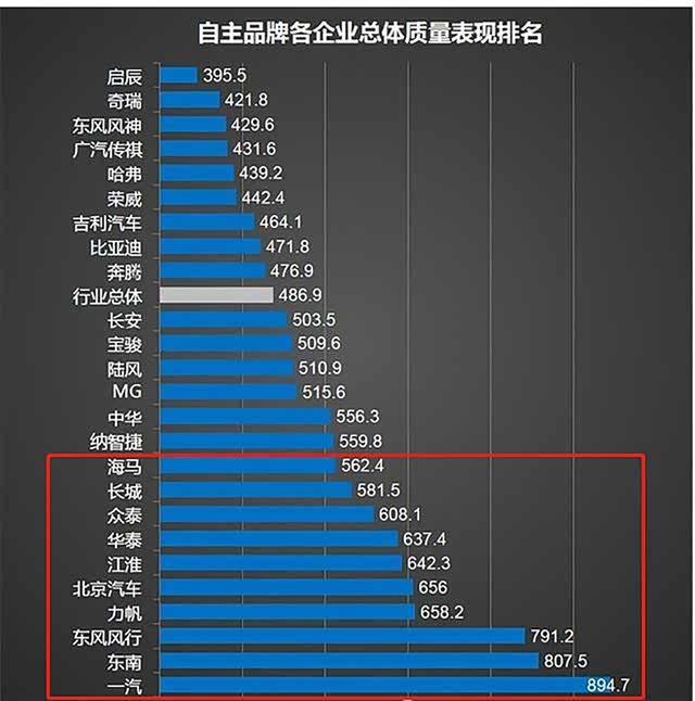 这个排名是某汽车网通过百车故障进行评估的,这一数值越大,故障率就越大,质量就越差。