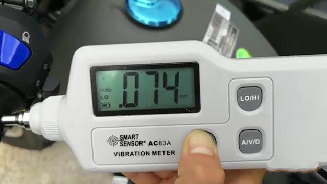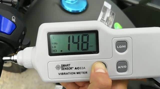 在车辆静止状态下,震动仪测得手把怠速最大振幅0.148mm,油门到底最大振幅仅为0.074mm,可见震动抑制良好 。