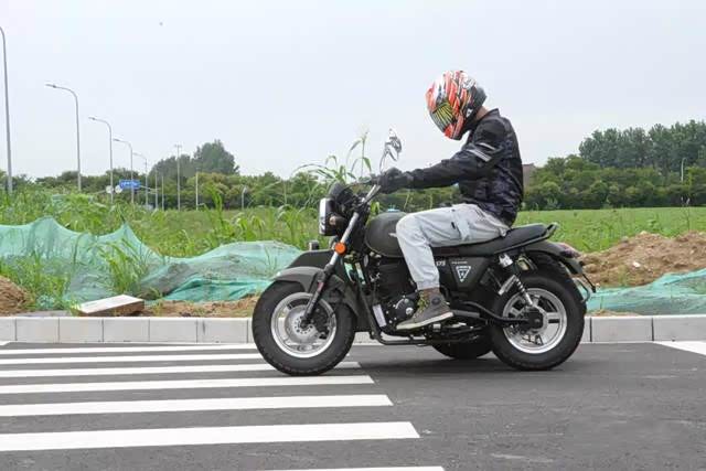 轮胎会有一定程度上的滑动,同时因为YG200B灵巧的操控特性,我们特意尝试了翘斗进行过弯,车手的重心转移到前方,压住手把的方向,车辆沿着一条圆弧通过弯道,车身和避震此时表现良好,没有出现明显的晃动以及发飘感。