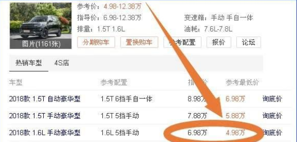 在动力方面,2018款 1.5T 自动豪华型众泰T500当初上市指导价格为8.98万起,如今最低参考价为6.98万;2018款 1.5T 手动豪华型众泰T500当初上市指导价格为7.88万,如今的参考最低价为5.88万。