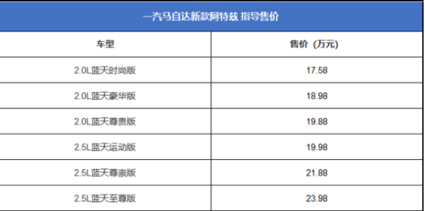 更有意思的是,在诸多合资车企降维打击的时代里,全新一代阿特兹的2.5L版本竟然比现款车型,在售价上高了2000元!没错,当凯美瑞与雅阁的顶配车型售价已低于23万元,全新一代阿特兹的顶配售价,竟仍高达23.98万元。