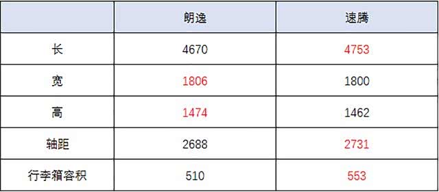 朗逸在宽度高度上比速腾略有优势,但是速腾在长度与轴距上比朗逸有明显的优势,所以总得来看,在尺寸这方面还是速腾比较出色,甚至达到了B级车的尺寸。