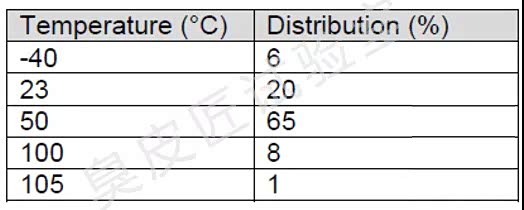 A_T,i是每个温度点下的加速因子,比如A_T,1算下来是5000,对应温度谱第一行-40℃工况下,其在台架上T_Test温度下的等效运行时间为7000~10000/5000个小时。