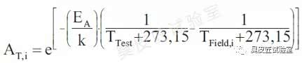 根据上述信息,我们对EDS在全寿命中的服役环境和周期有了初步定义,但是台架不可能执行寿命的加载测试。因此,为了提高试验效率、降低时间和费用的成本,我们引入适用于高温耐久试验的加速模型:Arrhenius模型。
