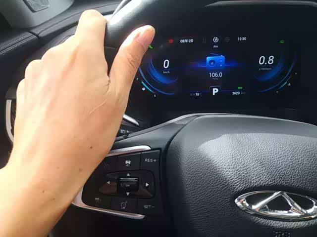 这台虎8是尊贵版,所以它的仪表盘跟其他配置的虎8不一样,是全液晶的仪表盘。右侧是转速表,左侧是车速表,而细微的观察之下你会发现,比如车点火之后,没有行车,这时候只有转速没有车速,这时候右侧的那个转速的动画就是在转动的,而左侧的那个就不转。如果是开始行车,左侧车速位置的那个轮子的动画也会开始旋转,很有意思。
