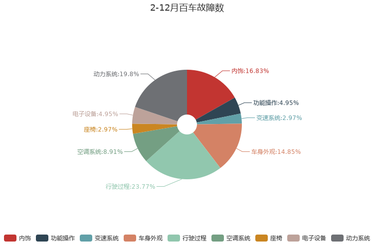百车故障数即平均每百辆车中出现的故障数,包含故障、异响、使用不便等问题,百车故障数值越小,代表质量越好。