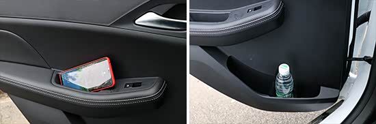相比前排,后排的储物空间就显得有些捉襟见肘了,除了前排扶手箱后侧的储物槽以外,就仅剩下门板上的两处储物空间。后排并未配备中央扶手,而且前排座椅后方也没有设计背袋。