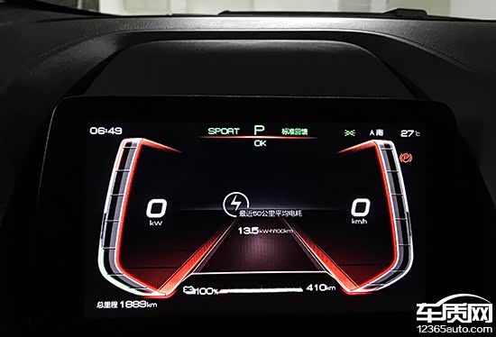 比亚迪元EV535的满电表显续航里程为410km,测试环境为高速公路+城市拥堵环路,空调制冷开启,风量1档。到达目的地的实际里程为47km,续航里程总共下降了47km,续航里程和实际里程之间的比值为1:1,可见表显的续航里程还是非常准确的。