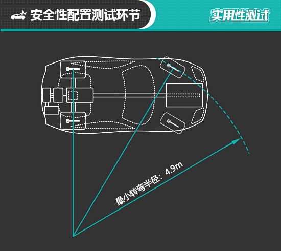 车辆在日常使用中,经常会遇到转弯或者调头的情况,这个时候车辆的最小转弯半径就显得非常重要了。最小转弯半径是指当转向盘转到极限位置,汽车以最低稳定车速转向行驶时,外侧转向轮的中心在支承平面上滚过的轨迹圆半径。转弯半径越小,则表明汽车的机动性能越好。了解爱车的最小转弯半径大小,在车辆转弯或调头时能做到心中有数,避免剐蹭等情况发生。经过实测,2019款比亚迪元EV535的转弯半径为4.9m,常规道路完成掉头动作较为轻松。