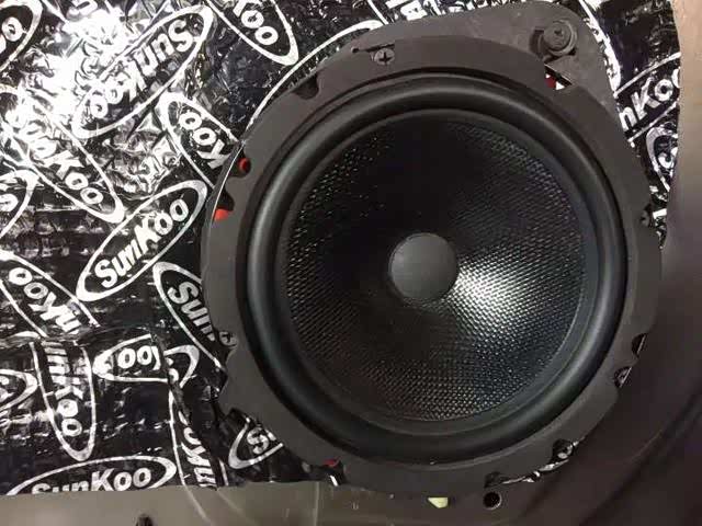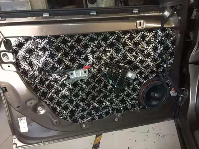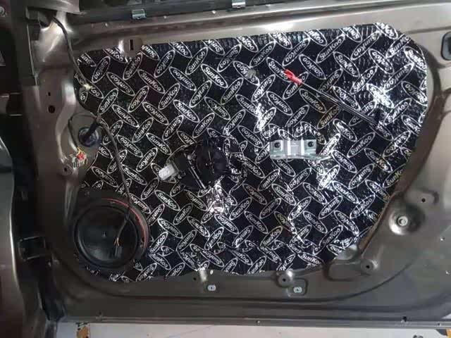 门板里层钢板是最薄弱的,很容易形成共振,高速行驶与空气摩擦形成的风噪也很容易穿透进来干扰我们的安静环境,这时贴上狮龙止振板后,就会提升它的厚实度,增强抵抗噪音的可行性,用手敲击的时候声音很明显的要厚实许多。而外层的隔音则让门板形成一个相对密封的环境,保证喇叭发挥出效果的同时,同时也增加了门板的强度,减少了中高频的噪音。