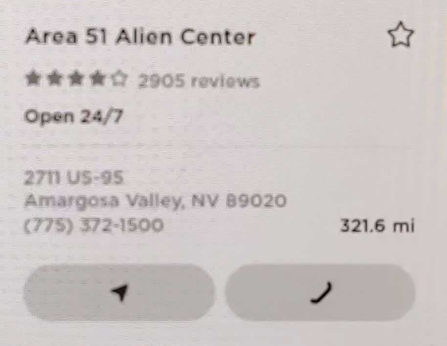 此前,马斯克曾表示,以后地图里会增加随机推荐目的地的玩法,方便无聊的车主及时找到好玩儿的去处。现在该功能正式到来了,点击Hungry或Lucky,可以导航去一个随机的餐馆或景点。特斯拉地图又将成为一个新的营销胜地了,因为随机导航的地点,都是从特斯拉车主推荐的地点中来的。