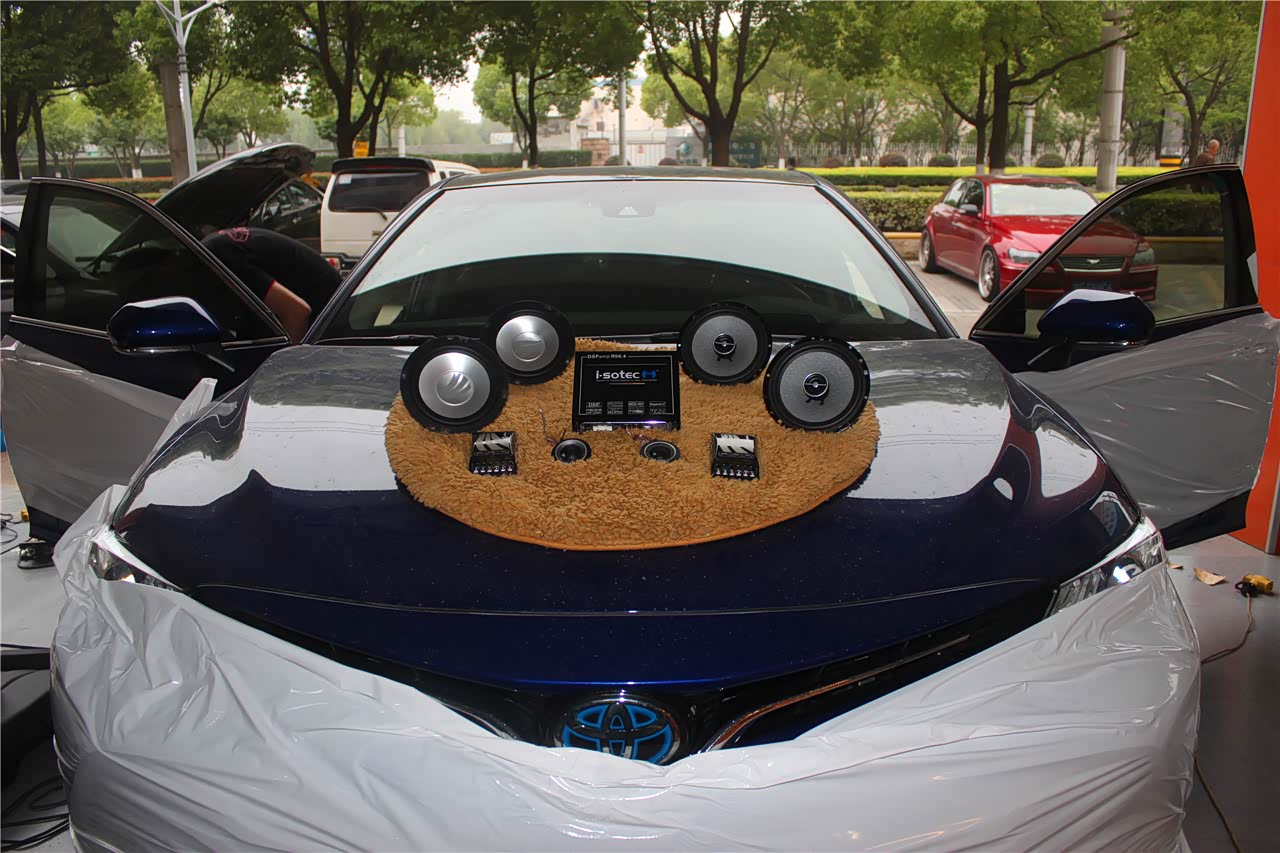 一套好的音响系统能旅途变得更加愉快,2019年款丰田凯美瑞原车音响相比老款车型还是有提升的,但是提升的幅度不大,所以原车音响的音盆单薄,车内声场效果很差,声音浑浊。让原本就喜欢收听高品质音乐的车主无法忍受,在经过朋友介绍后,决定到苏州音乐汇汽车音响改装进行音响改装升级。经过技术人员推荐与车主的试听,车主选择了以下改装方案。