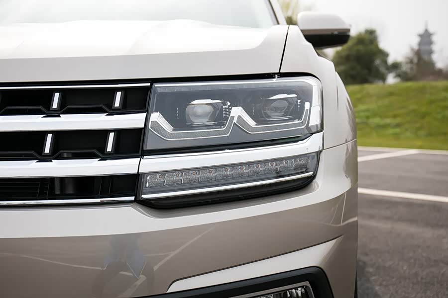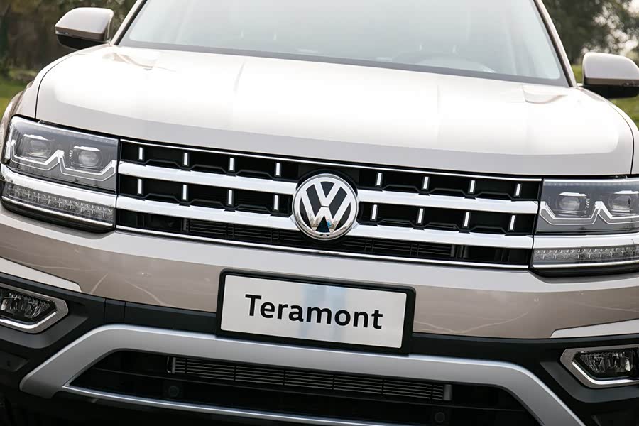 大众途昂延续了CrossBlue概念车的设计语言,前脸处粗壮的双横幅镀铬格栅与造型硬派的头灯相连接,下方粗壮的银色护板与粗犷的车头凸显出野性感。