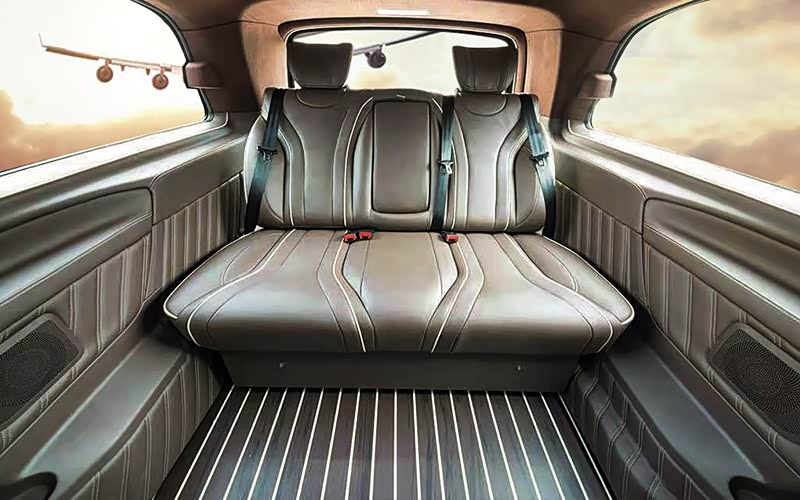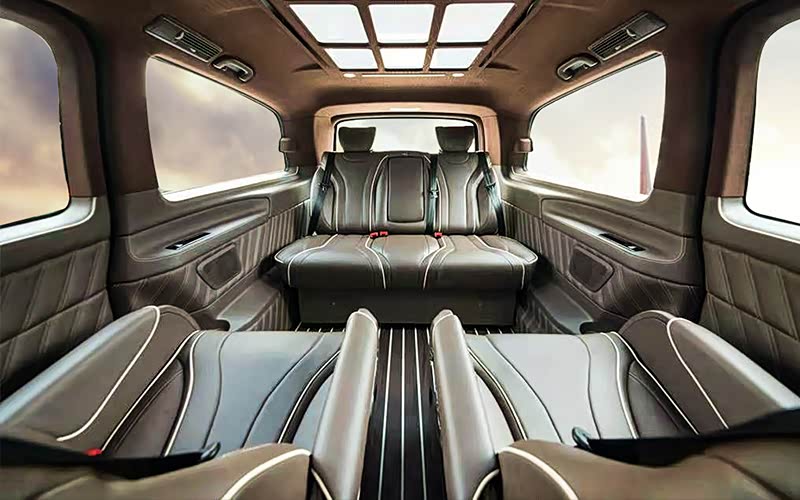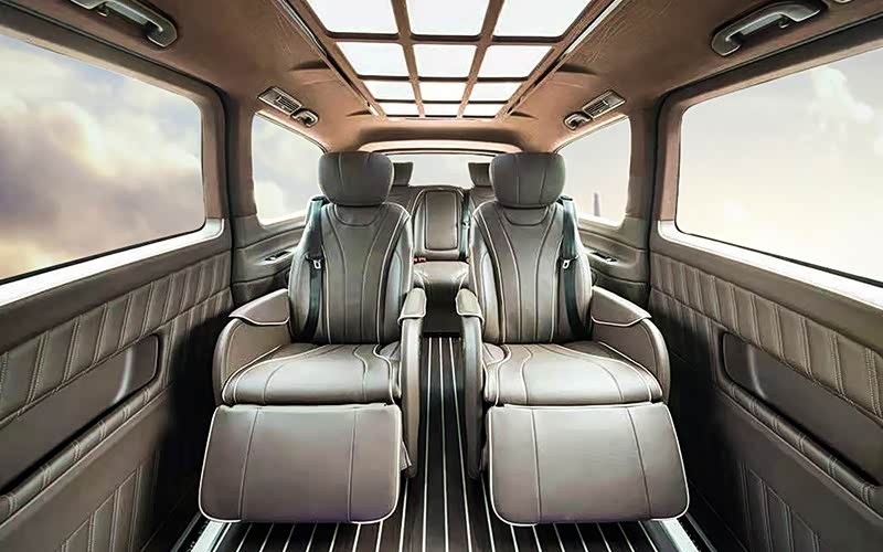 最后,简单介绍下改装原车及新增配置:原车为进口中东版V250长轴距,自带双侧电动门、电尾门、3区增强空调、COMAND人机交互、touchpad手写板、自动阻尼调节舒适悬挂、后排电动唤起蝴蝶窗、驾驶员注意力监测等主动安全配置;新增主要配置有:铂特曼中排航空座椅、三排可放平沙发床、12宫格顶灯及翻毛皮内顶、南美柚木地板、全车真皮包覆、迎宾合金踏板、高品质木质饰板等。