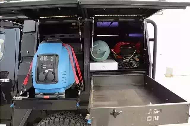 “勘路者”最大的设计亮点就是尾箱部分,它是一款地道的澳式产品,专供澳洲市场。简单实用,设计合理,它将皮卡后尾箱改装成了一个有着“无限”潜能的世界。无论是储物还是餐饮、维修、起居生活,它都可以实现。