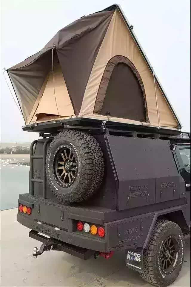 “勘路者”尾箱顶部可以安装一个车顶帐,能够提供两个成年人的野外睡眠需求。