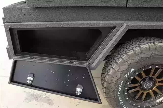 “勘路者”的电力供应有多重选择,可以在车顶安装软性太阳能板,提供车辆的太阳能清洁能源。也可以使用蓄电池和发电机对野外生活进行供电,户外延展功能非常强大,可以搭载非常多的户外生活电器,而且设计有滑轨抽拉,使用方便快捷。