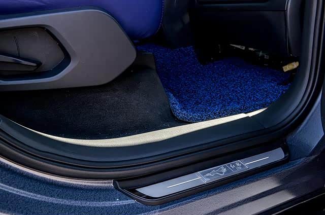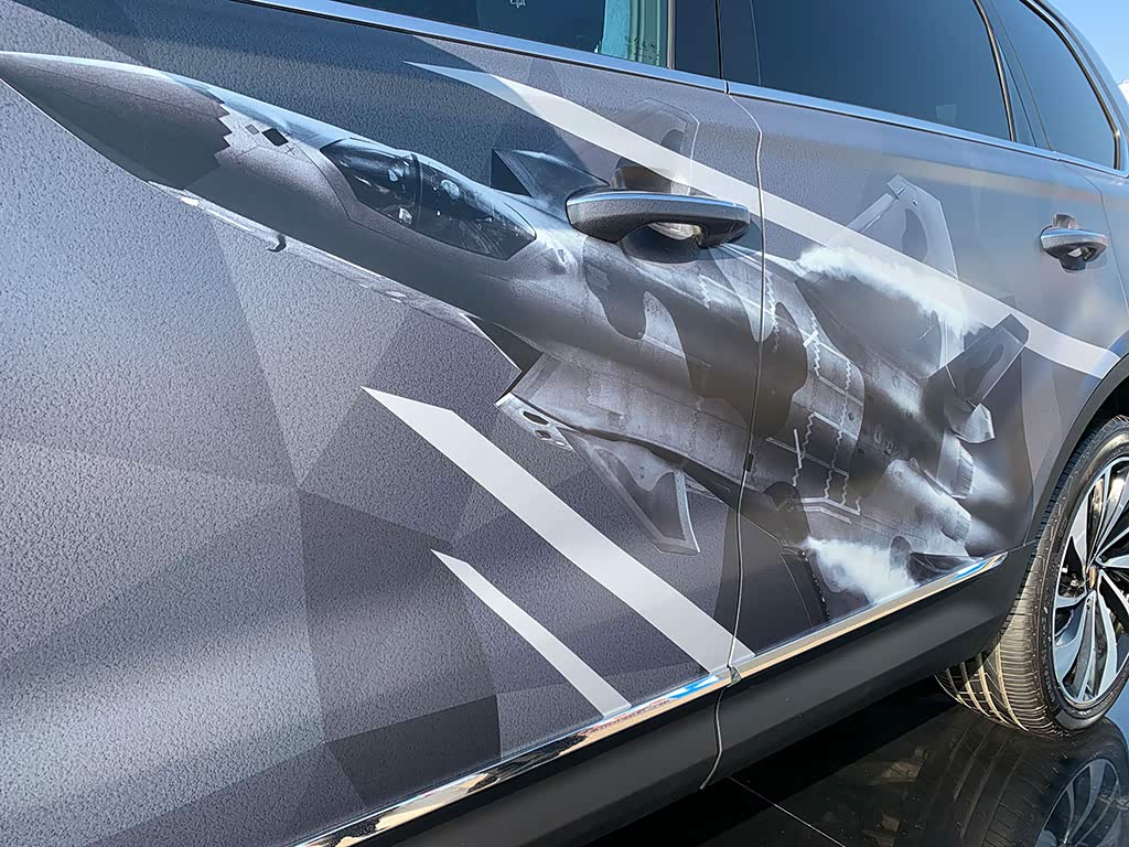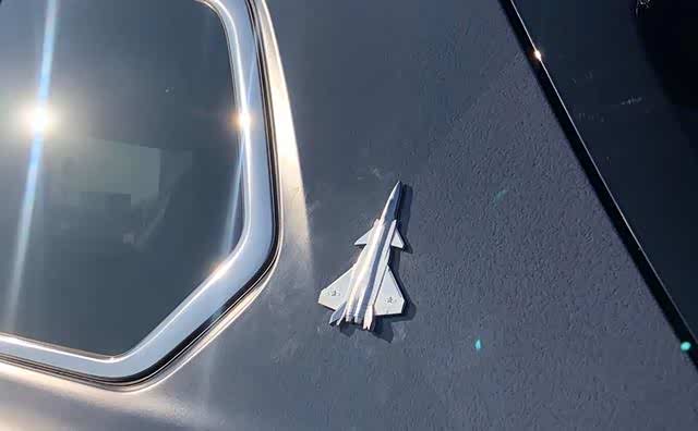 红旗HS7的侧面有歼20的飞机涂装,看上去非常酷炫,配合红旗HS7高大的车身显得很有情调。红旗HS7歼20特别版本的前翼子板处有一个红色涂装的标志,D柱有一个歼20飞机的造型,看上去非常有质感。另外后门脚踏板的位置也有专属脚踏,上面有一个歼20飞机的造型,很有档次感。
