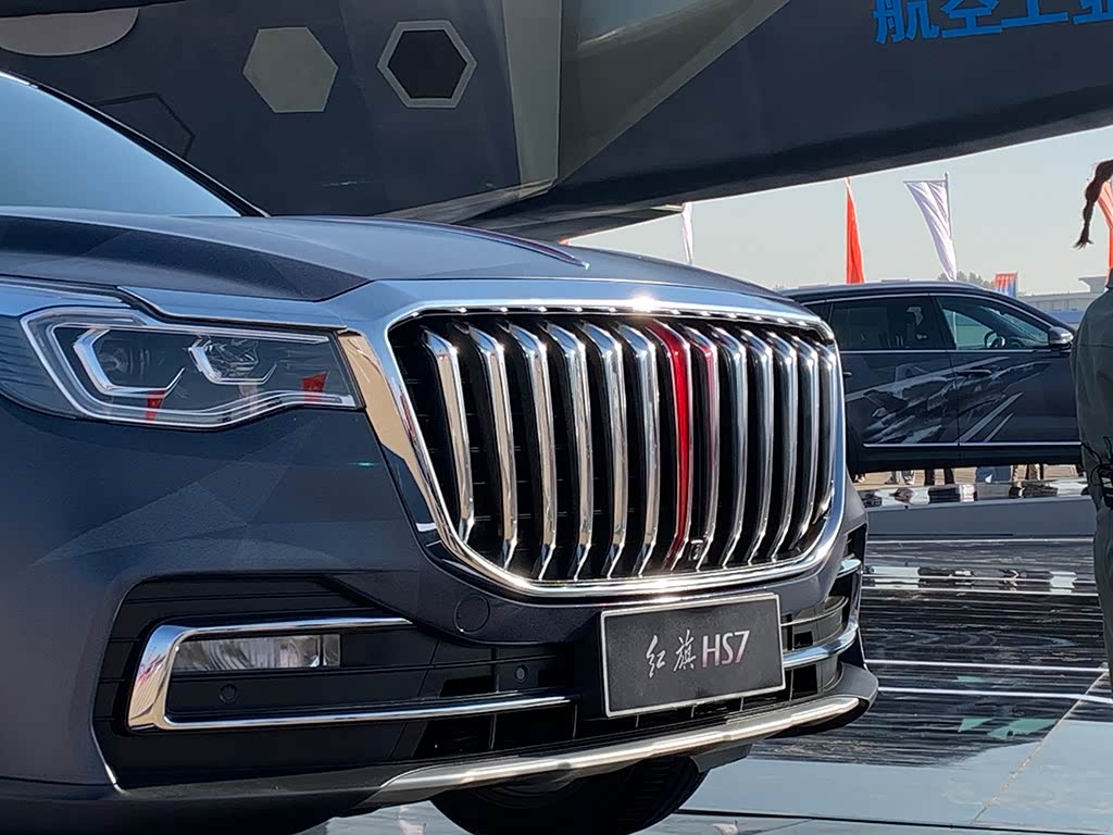 红旗HS7歼20特别版车型的前脸相比普通版车型没有做调整,它采用了硕大的进气格栅设计,上面采用了直瀑式的镀铬条进行装饰,中间有一个独特的红标,看上去很有豪华感。前脸底部的包围采用了一个贯穿式的设计风格,并采用镀铬条进行装饰,很运动并且豪华。