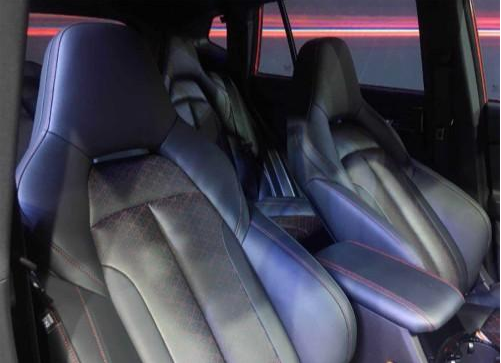 再把视角往下移,它的侧裙是以向内凹陷为主的,而中间有着一块锐利的凸起,这种设计增加了车辆本身的层次感,煞是好看。5辐式轮廓样式新颖,并采用了双色涂装,这非常有特点。刹车钳不是很大,但红色的涂装在车轮后面隐现着,带来了几许不一样的风采。