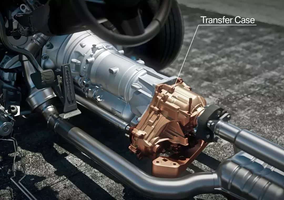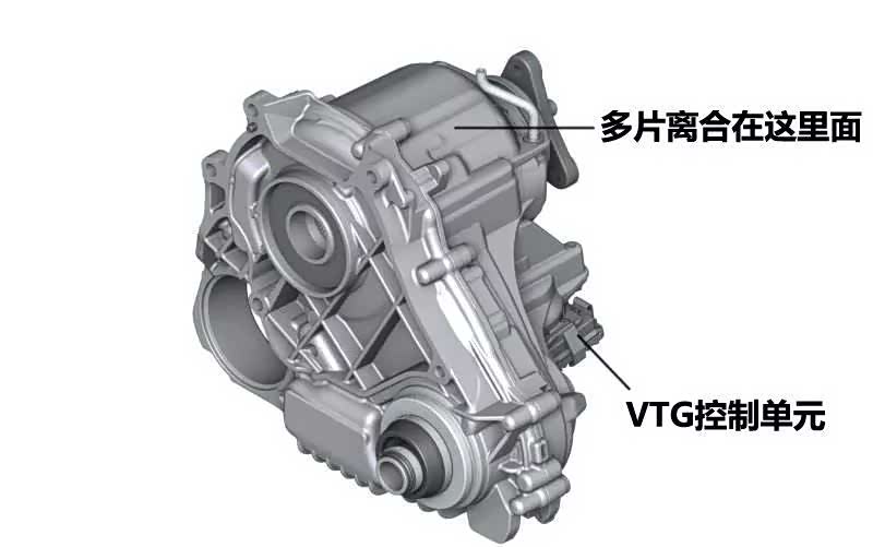原理就是发动机的动力经过变速箱传递到分动器,然后再通过传动轴传递到后桥上,在普通路面上,分动器内的电机压紧离合器片,再将一定比例的动力传递到前桥上,再传递到4个车轮上。而这些操作,都是经由位于ATC13分动器中的VTG控制单元来计算的。