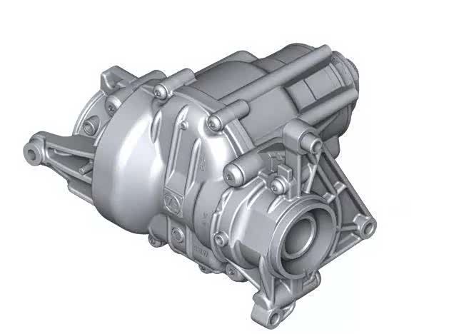 而为了配合前驱平台,在F49 X1,F39 X2上的新式xDrive采用了集成在后桥上的纵向力矩分配装置(LMV),多片离合器就位于LMV内部,而非基于后驱的xDrive那样是将多片离合器放置于中央差速器上的。而前驱平台的xDrive主要部件包括横置变速箱,伞型齿轮传动装置(PTO),传动轴,以及和后桥差速器集成在一起的纵向力矩分配装置(LMV)。