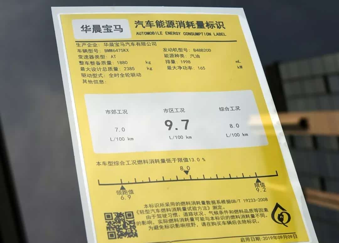 最近公布的G08 X3能耗标识,