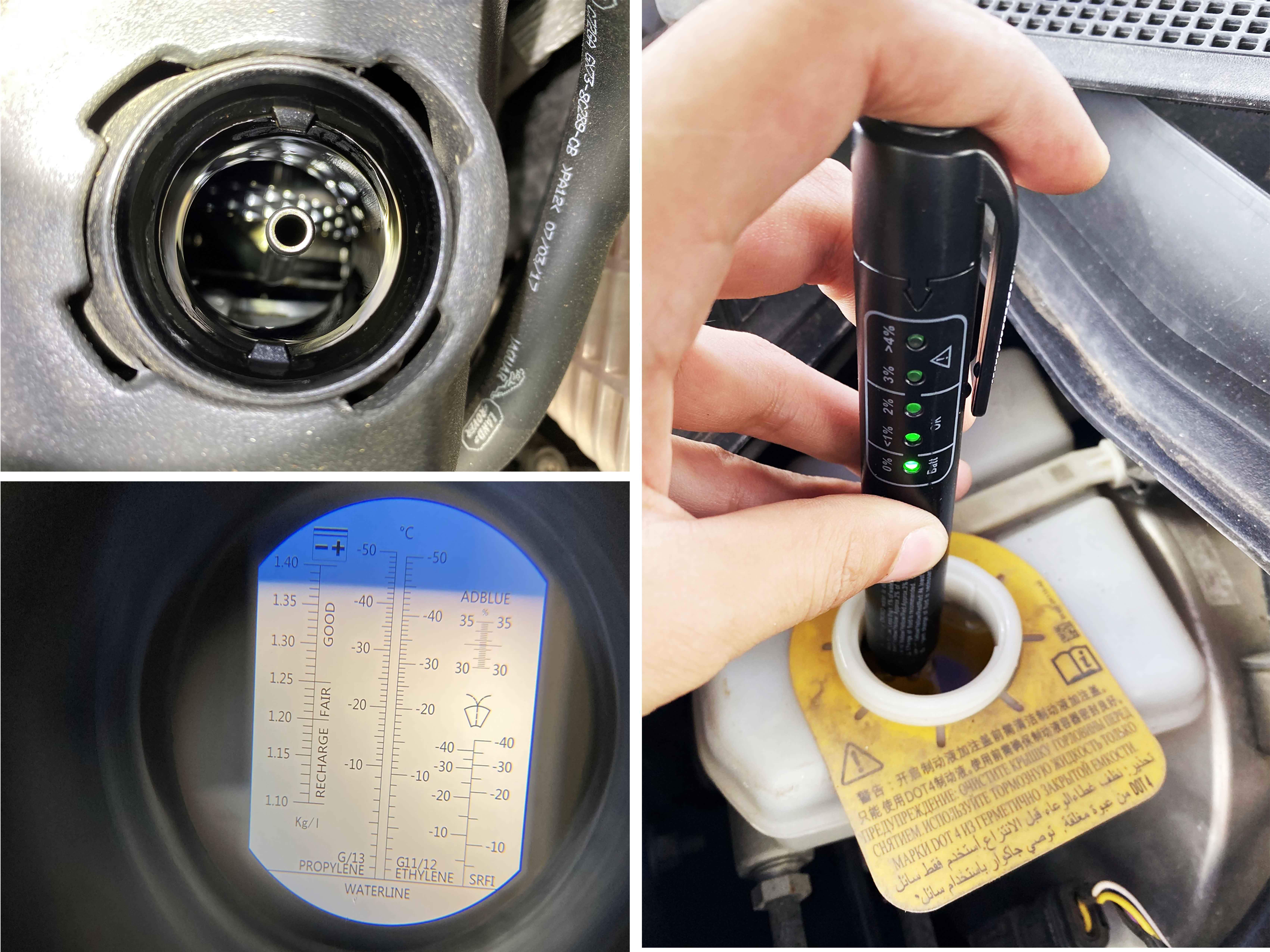 合上机盖之前用仪器检查了下全车油液,看来这车应该刚做完保养没多久,不然机油也不可能如此的透亮。