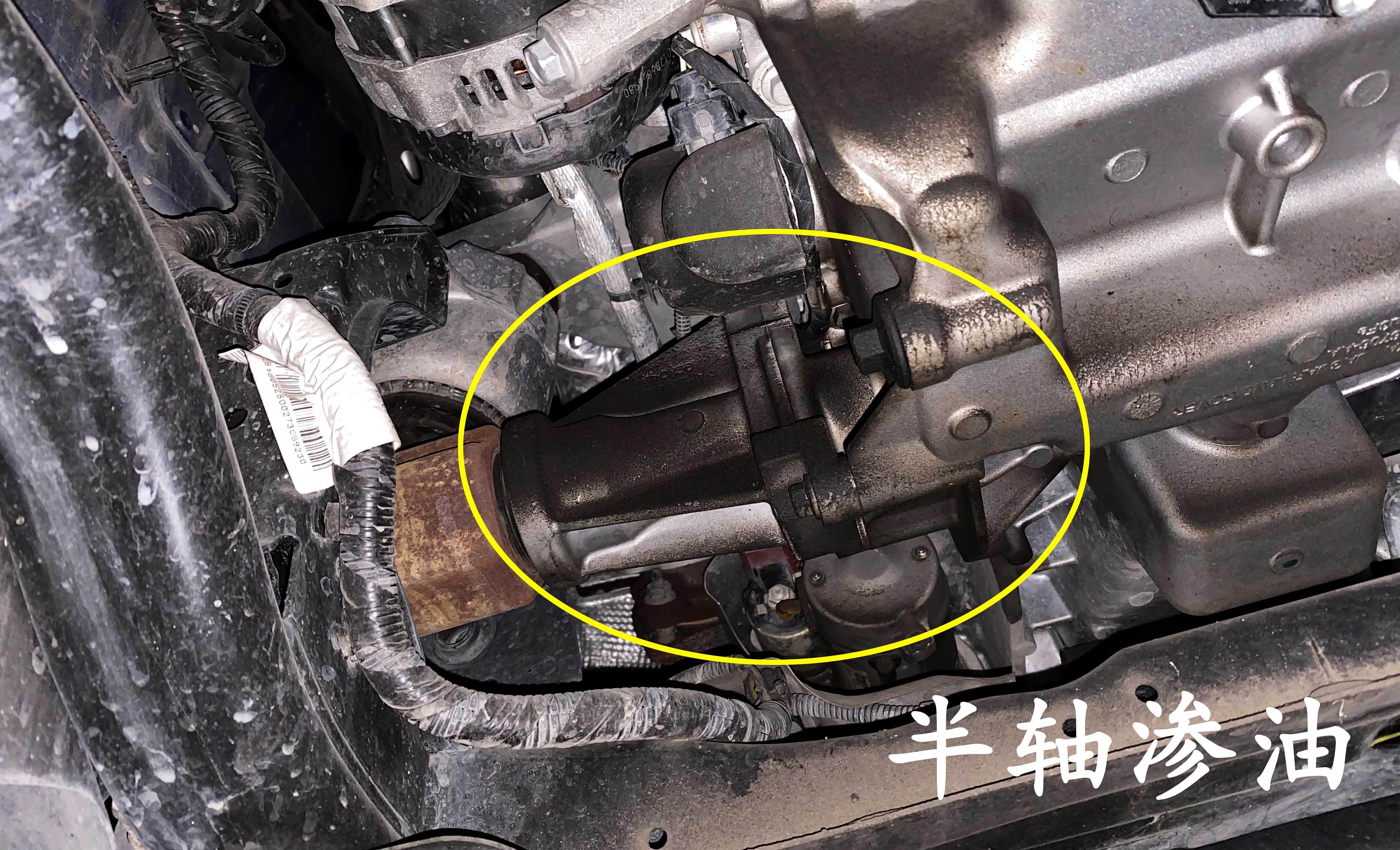 此位置为车辆半轴位置,从图片上大家便可清晰的看到渗油的痕迹,不过···这并不是什么严重的问题。