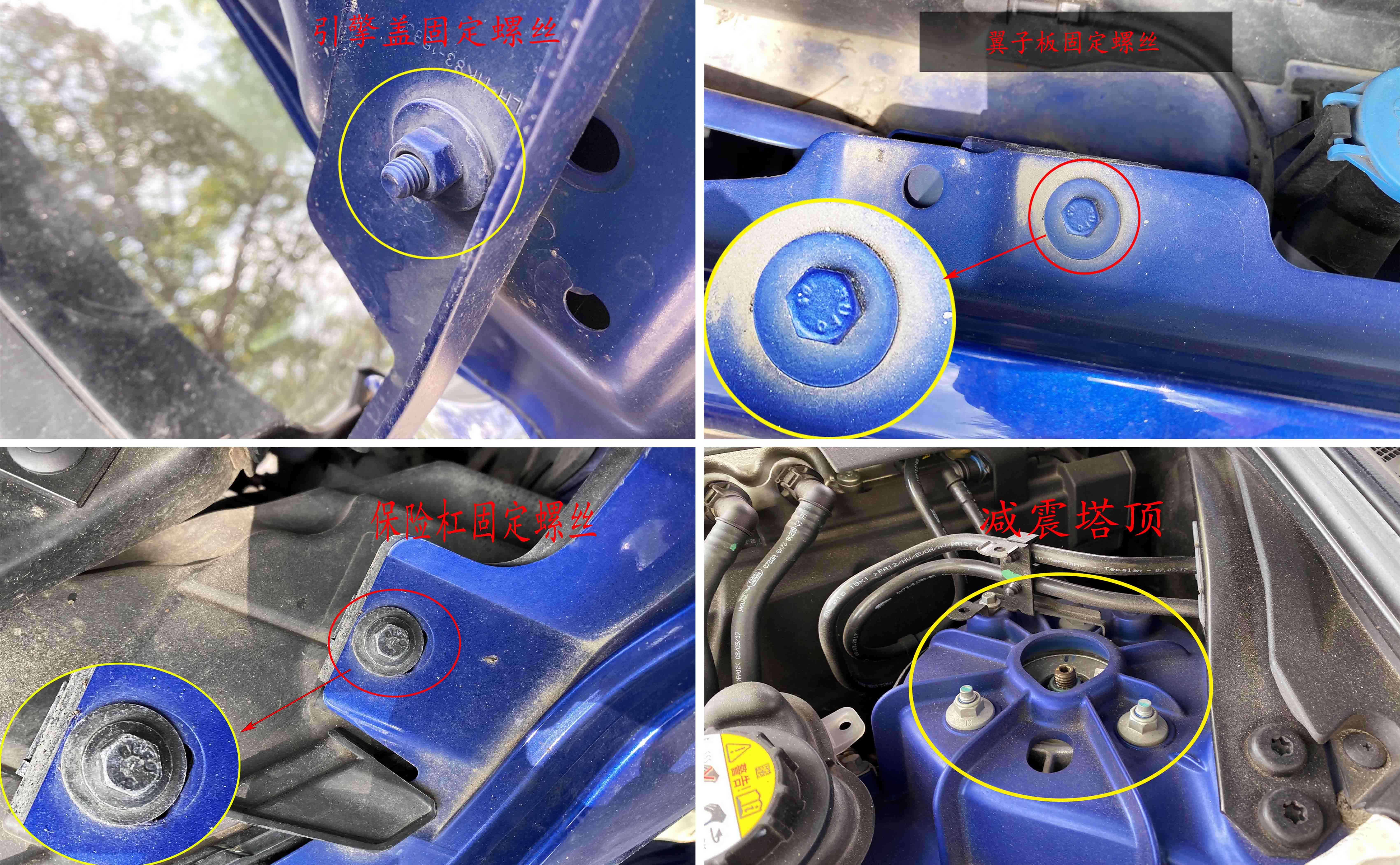 检查机舱覆盖件(引擎盖、翼子板、保险杠等)发现前保险杠固定螺丝有拆装痕迹,其它均无异常,像这种情况该怎么分析呢?结合之前的漆面检测,这台车应该之前在左前方有过一次小的刮蹭,完后又做的油漆,所以要说这台车有事故那基本上是不可能了!