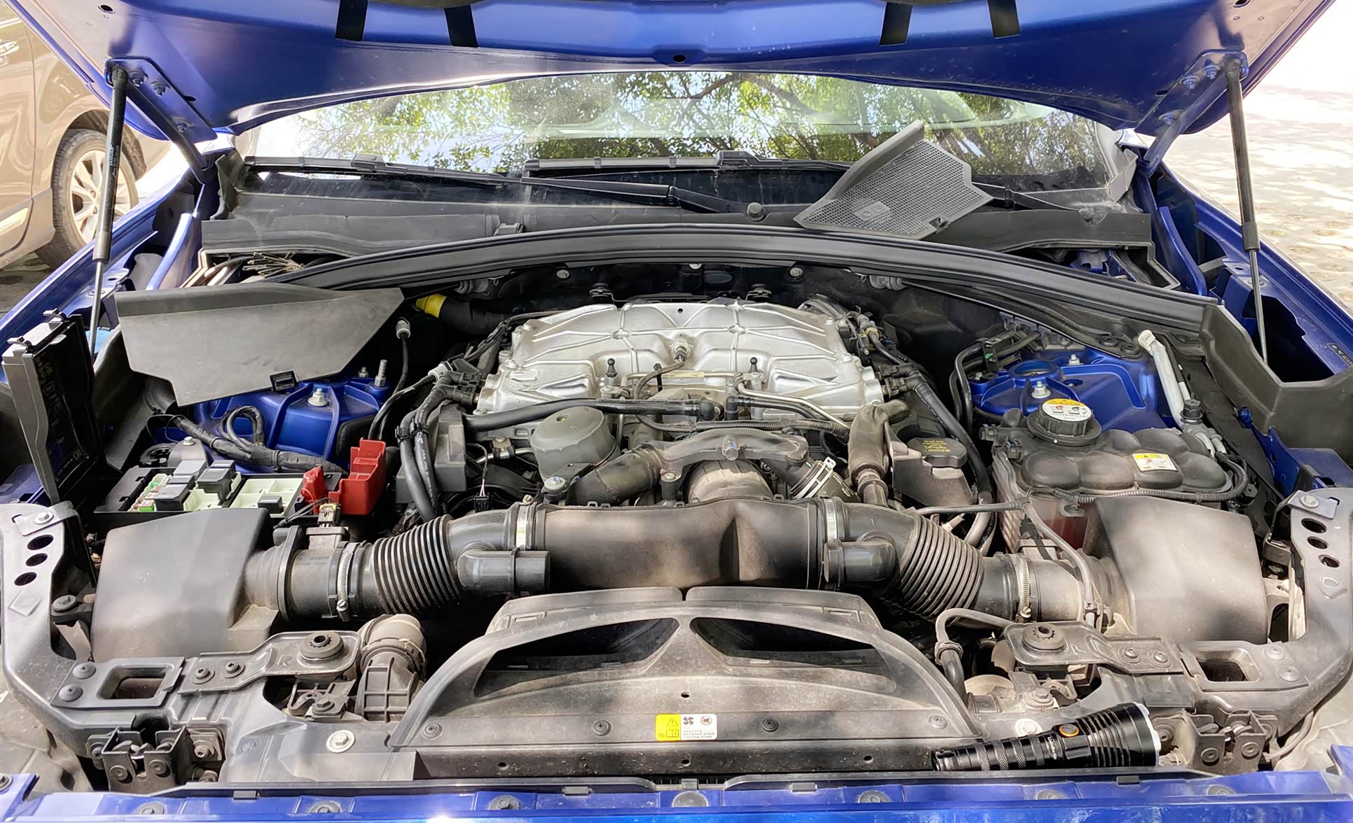 拉开引擎盖,准备进行机舱检测,大概扫了一眼机舱内部,并没有之前检测那些个人车主的车子那么脏,看来原车主对车子还是挺爱惜的。