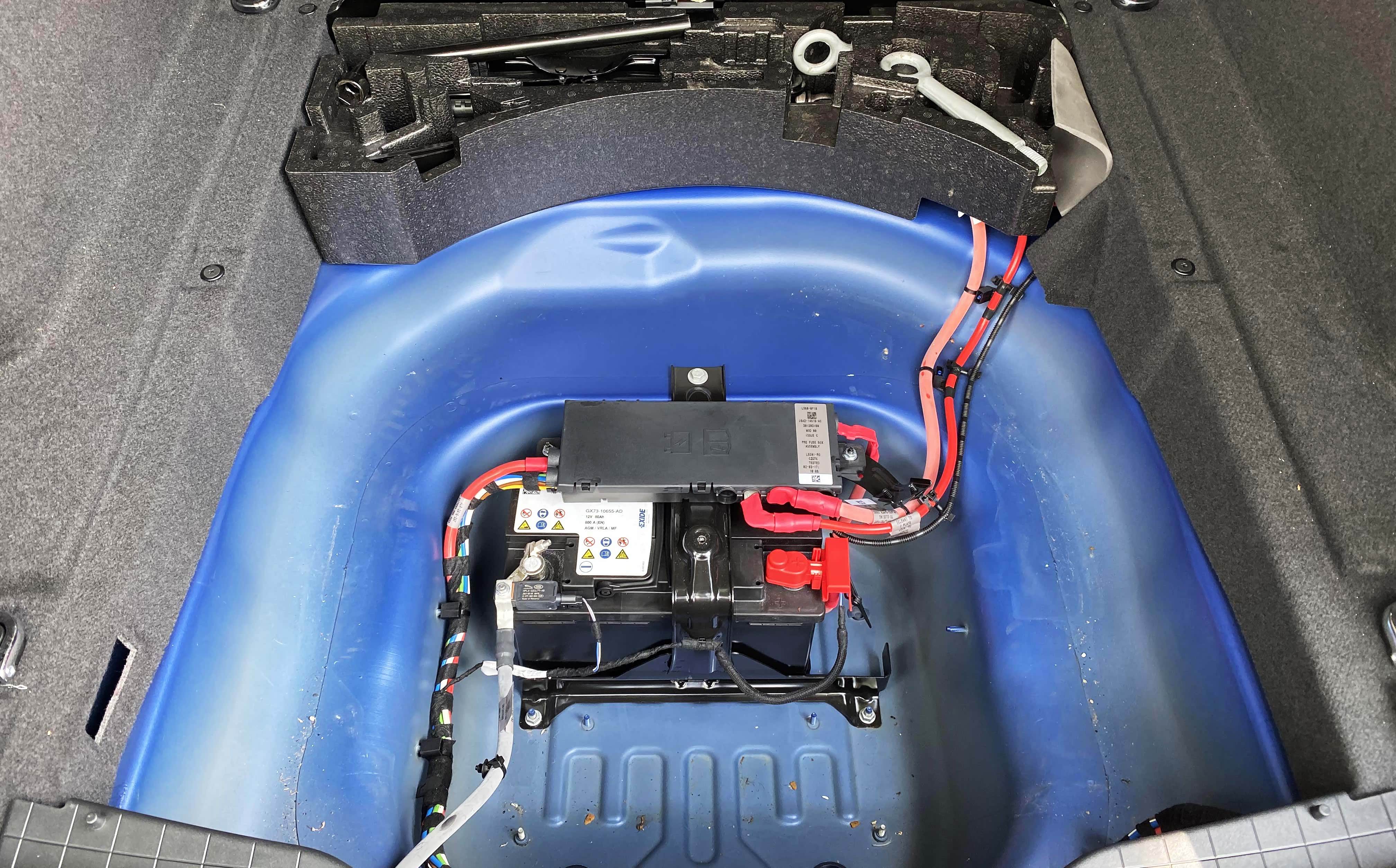 将腿毛···呸,什么腿毛,将备胎取出,看到了车辆的电瓶,不过现在我们先不看它。仔细检查备胎坑内部的每个角落,未发现有事故撞击修复的痕迹,因此车辆后部大事故的可能性也可以排除。