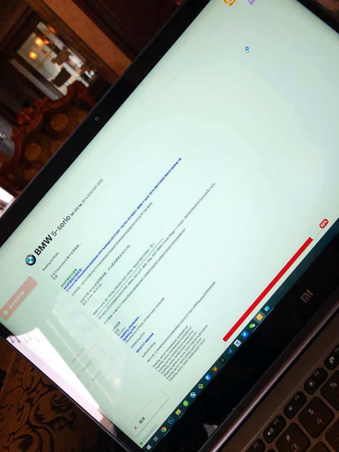 连接AT设备,使用bench接线的方式读出原厂ECU程序,打包发给总部工程师配合国外顶级技师调校。