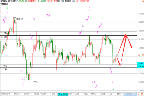 黄金:隔夜的黄金如我们预期的那样,没有继续走跌,而是走的反弹,没有太大同样是在1480这里企稳,整体以反弹位主基调,没有太大的悬念,昨天我们给到的位置同样偏保守没有给到进场的机会,但是思路没问题,黄金在1480这个关口是比较重要的,我们从之前的走势便能看出一二,现在到本月下旬我们依然不能排除这里有可能是黄金下一轮涨势的起点,同样也有可能继续下破去测试1460的低点,还需要继续确认,那么今天的黄金我们应该怎么操作呢?