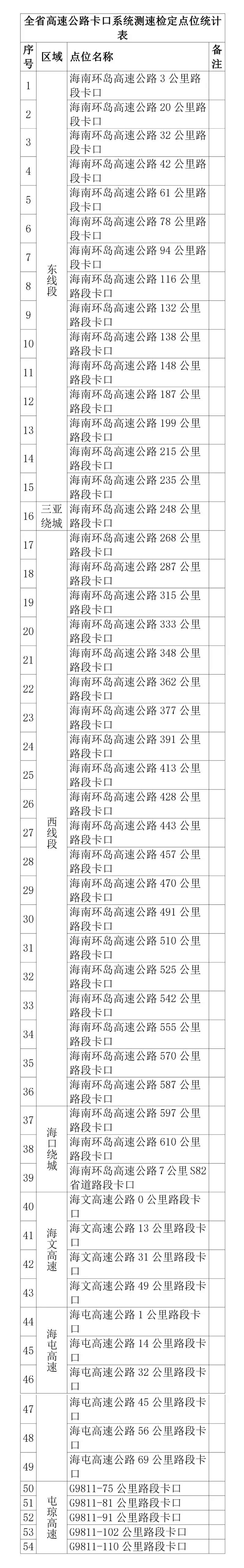 海南环岛高速 最新测速点位 公布【2019-11-15更新】