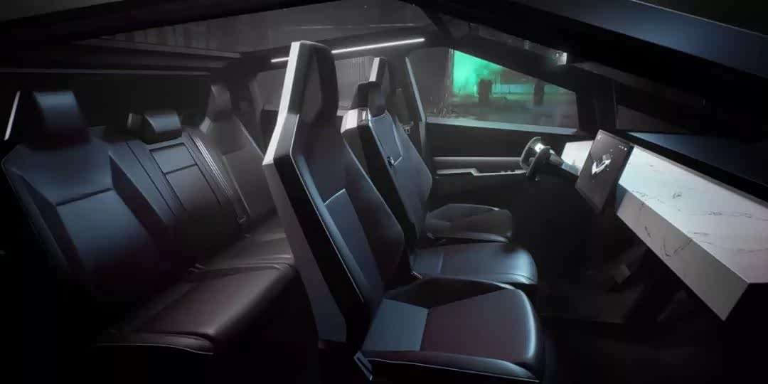 内饰依然特斯拉,但从方向盘和座椅造型也能看出一些 Cybertruck 元素。中控大屏由 Model 3 的 15 寸增大至 17 寸。座椅为双排六座式布局。