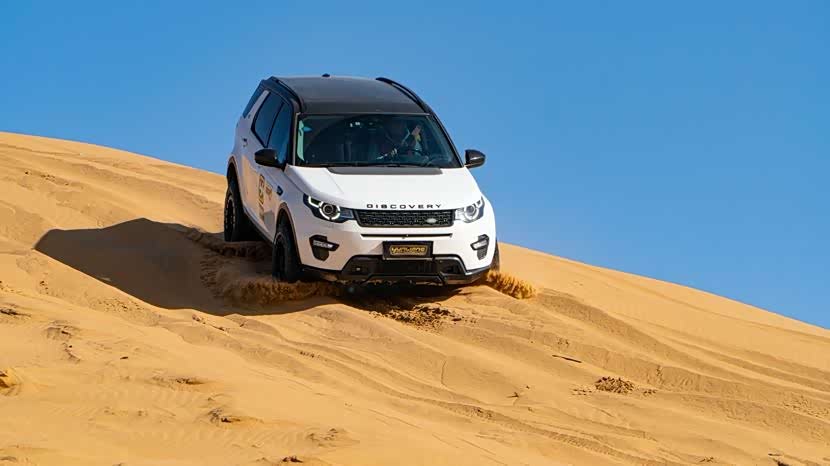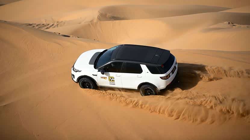 低沙区的地形并没有给发现神行带来什么难度,将地形模式选择到沙地之后,积极的动力响应再加上比硬派越野车轻盈许多的转向控制,让它穿梭在小沙丘之间时如鱼得水。
