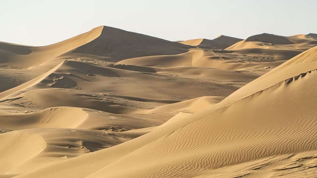 抵达目的地休整一晚,转天一早从夜鸣沙下道点进沙,这里的地形开阔,沙丘也较低矮,是检验车辆能否向高沙区挺进的第一道关卡。