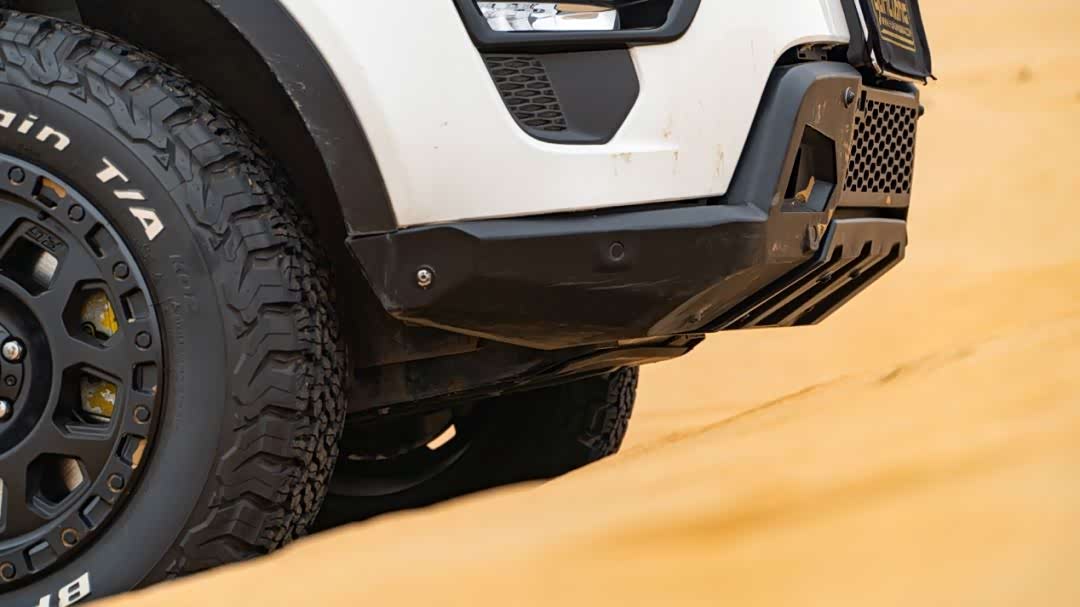 然而相较提升接近角,换装前杠在沙漠中更重要的作用是提供车头的防护性,因为出其不意的地形可能瞬间就能摧毁原厂包围,并损坏水箱等机舱部件,轻则宣告旅程结束,重则……