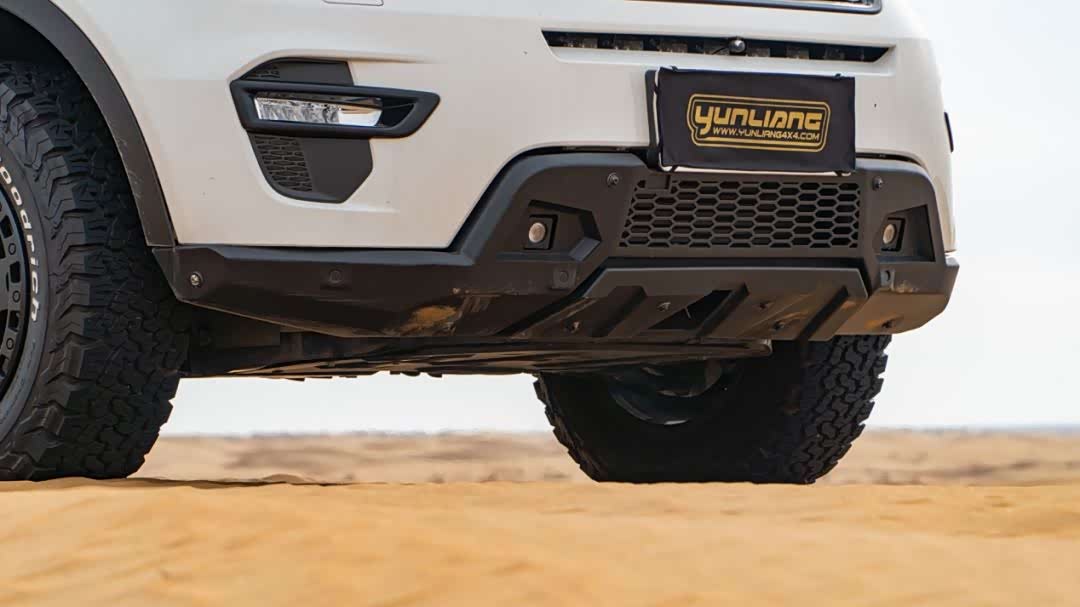 城市SUV受制于车身结构,安装重型的防护杠显然不合适。MR为发现神行设计的这款前杠替换掉了原车的前小杠,并固定在车身受力结构上,维持了原车的外观整体性,重量轻,并有效提供了远强于原厂的防护性能。