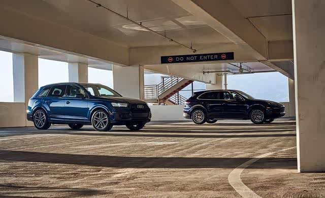 在美国,大众集团销售7款基于MLB Evo平台的SUV,从售价44000美元的奥迪Q5到售价300000美元的宾利本特加·穆林纳。同时包括保时捷卡宴和奥迪Q7。2020年款保时捷卡宴在2019年进行了改进,自重2.5吨,有多达541匹马力的发动机。但保时捷品牌以跑车出名,其引擎小巧简单,甚至不需要水冷却。然而保时捷的SUV则是与奥迪共用发动机和平台。MLB Evo平台可以根据需要伸展和收缩,卡宴使用的是短轴距。而另一款测试车奥迪Q7轴距则比卡宴要长10厘米。有意思的是新款保时捷卡宴和其他奥迪使用新的涡轮增压3.0升V-6发动机,但是新款奥迪Q7发动机却没有变化。那么这4款豪华车型,到底谁更优秀呢?