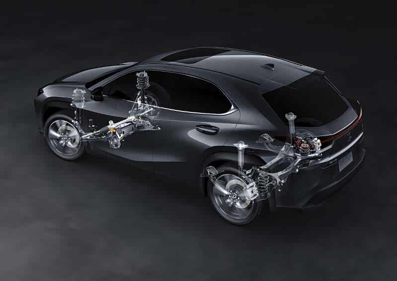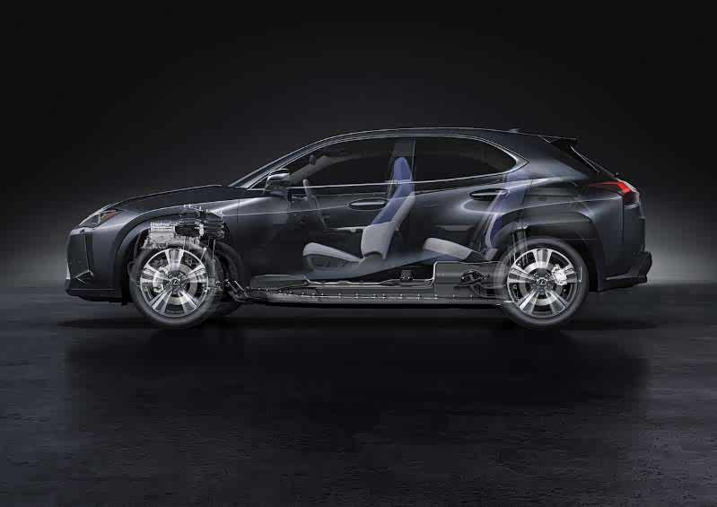 当然UX300e使用了与UX相同的GA-C平台,但是为了因应装置电池组所造成的重量变化,底盘下方增加了支撑架,并为避震器优化了阻尼设定。除了藉由电池组放在地板下来降低重心之外,还优化了前后重量分布以实现出色的运动性能。