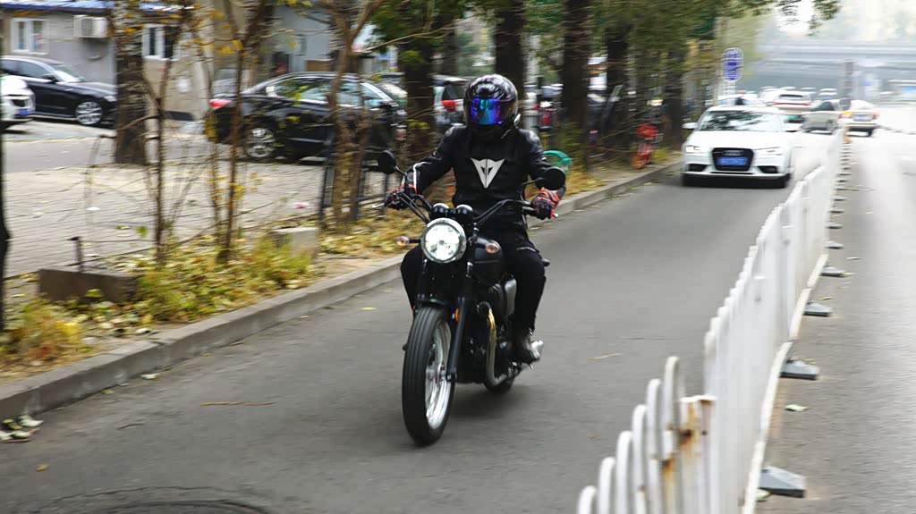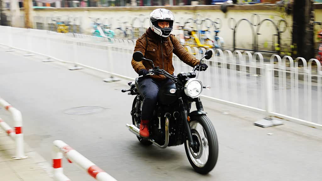 W800 Street在操控起来很轻巧灵活,这得益于它出色的骑行三角设定以及很好的重心设计。其较为宽大的车把配合,直径略有缩小的18英寸前轮,在低速骑行时不论是转弯还是躲避危险的左右翻身都呈现出快速稳定的操控感。
