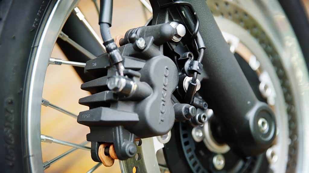 W800配备前320mm单浮动盘配单向双活塞卡钳,后制动为270mm刹车盘配单向双活塞卡钳,整体制动表现很稳定,在制动的手感上也比较线性。而且标配的ABS系统,介入时机也很准确,进一步加强W800的行驶安全。
